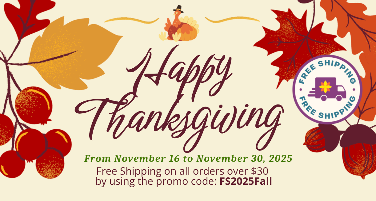 From November 16 to November 30, 2025, enjoy Free Shipping on all orders over $30 by using the promo code FS2025Fall at checkout.